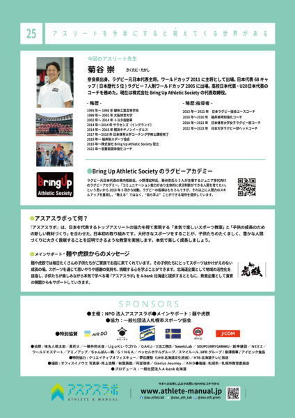 麺や虎鉄がメインサポートを務める無料の子供向けスポーツスクール「アスアスラボ」第25回を開催いたしました。