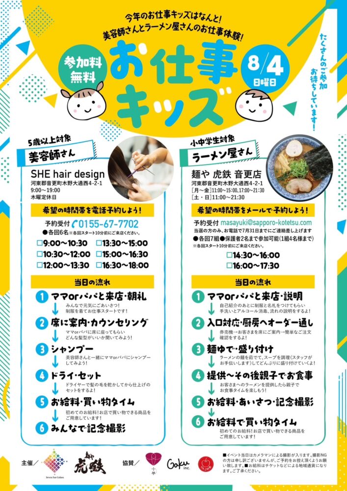 日にち:2024年8月4日(日曜日) 時間:①14:30~16:00 ②16:00~17:30 場所:麺や虎鉄音更店(河東郡音更町木野大通西4-2-1) 応募方法:メール[ masayuki@sapporo-kotetsu.com ] 当選の方のみ、お電話で7月31日までにご連絡差し上げます メール内容:名前、住所、電話番号、参加人数(1組4名様まで)