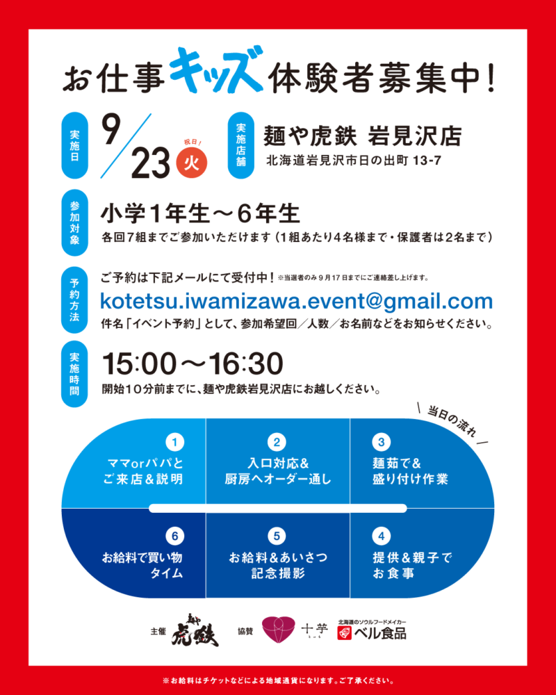麺や虎鉄 岩見沢店にて、キッズ向け「お仕事体験イベント」を開催します!