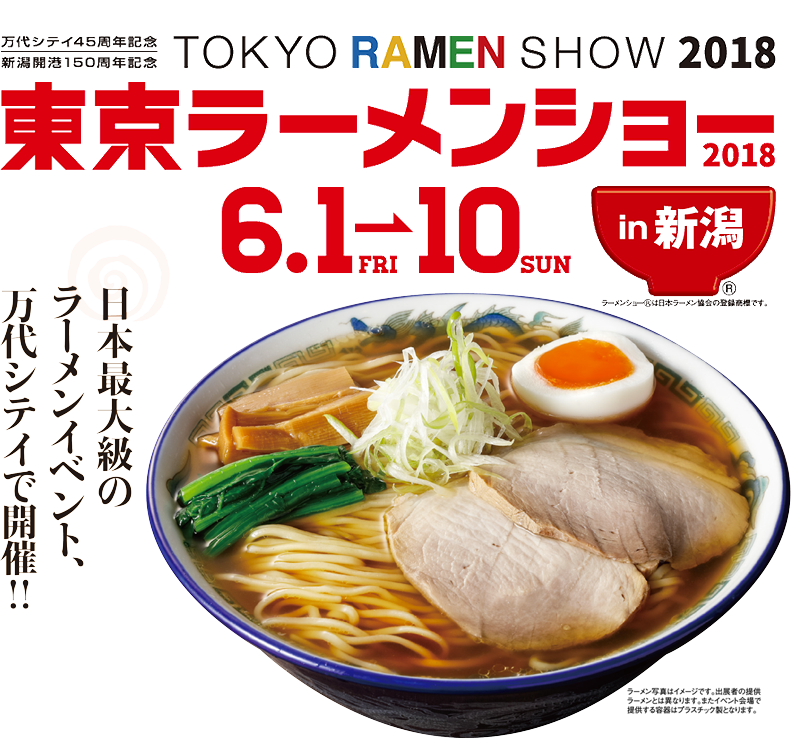 2018年6月1日~10日まで新潟万代シティで開催の東京ラーメンショー2018in新潟に麺や虎鉄が出店いたします。