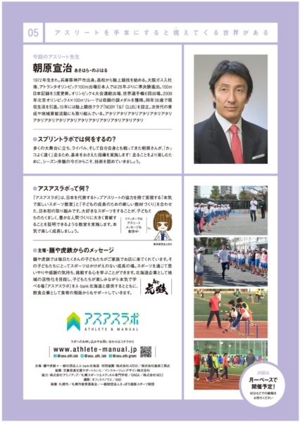 アスアスラボは毎月1回開催、様々なプロアスリートが講師となり、北海道の子供達にスポーツを通じて楽しみながら学べる場を提供します!
