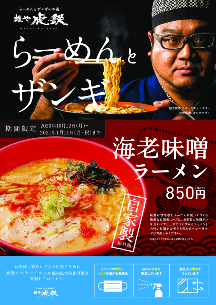 2020年10月12日から2021年1月11日まで期間限定で海老味噌ラーメンを販売いたします。