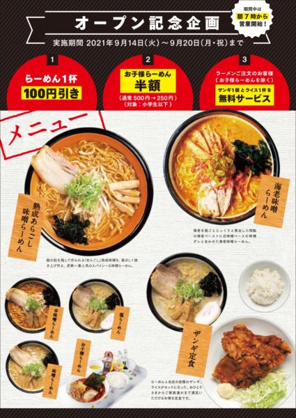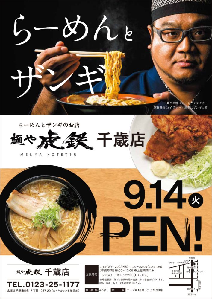 2021年9月14日 麺や虎鉄千歳店をオープンいたします。