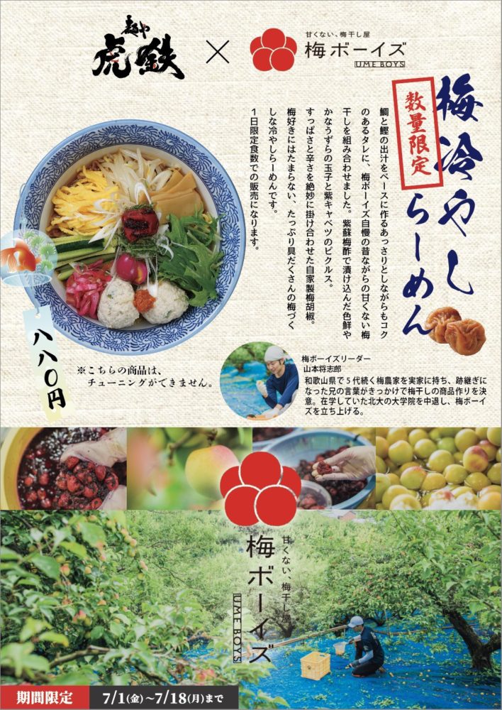 和歌山の梅干し屋「梅ボーイズ」×「麺や虎鉄」コラボ