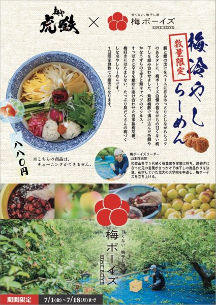 和歌山の梅干し屋「梅ボーイズ」×「麺や虎鉄」コラボ 7月1日~18日期間限……