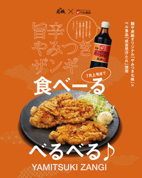 麺や虎鉄とベル食品がタッグを組んだ、 旨辛でやみつき必至の「ザンギ」が明日から……