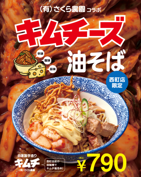 【西町店限定】 地元・さくら農園さんとの特別コラボ 『キムチーズ油そば』が登……